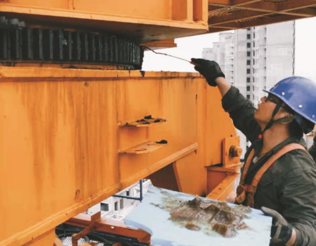 2020年,分公司的生產(chǎn)任務(wù)繁重,班組全年共完成大型設(shè)備安拆作業(yè)241臺(tái)次,大型設(shè)備加節(jié)作業(yè)126臺(tái)次,大型設(shè)備維保作業(yè)794臺(tái)次,及時(shí)、高質(zhì)量的滿足各土建分公司對(duì)施工設(shè)備的需求。班組人員每周要進(jìn)行四次安拆作業(yè)和六次加節(jié)作業(yè),再加上維護(hù)保養(yǎng)和設(shè)備維修,幾乎沒(méi)有休過(guò)一個(gè)完整的節(jié)假日。由于項(xiàng)目都在外地,他們常常由一個(gè)城市趕往另一個(gè)城市,經(jīng)常一周之內(nèi)在兩個(gè)甚至更多的城市工作。他們已經(jīng)習(xí)慣這種“連軸轉(zhuǎn)”式的工作方式,班長(zhǎng)說(shuō):“今年生產(chǎn)任務(wù)繁忙,大家都是全力以赴,有不完成工作不休息的干勁?!庇械穆毠榱瞬坏⒄`生產(chǎn),連續(xù)加班,中秋節(jié)都沒(méi)休息。對(duì)于他們來(lái)說(shuō),沒(méi)有下班和休息的概念,只有馬不停蹄地與時(shí)間賽跑。大家深知,早一天完成任務(wù),就能為項(xiàng)目施工進(jìn)度增添一份保障。大家本著這樣一種信念,“舍小家、為大家”。